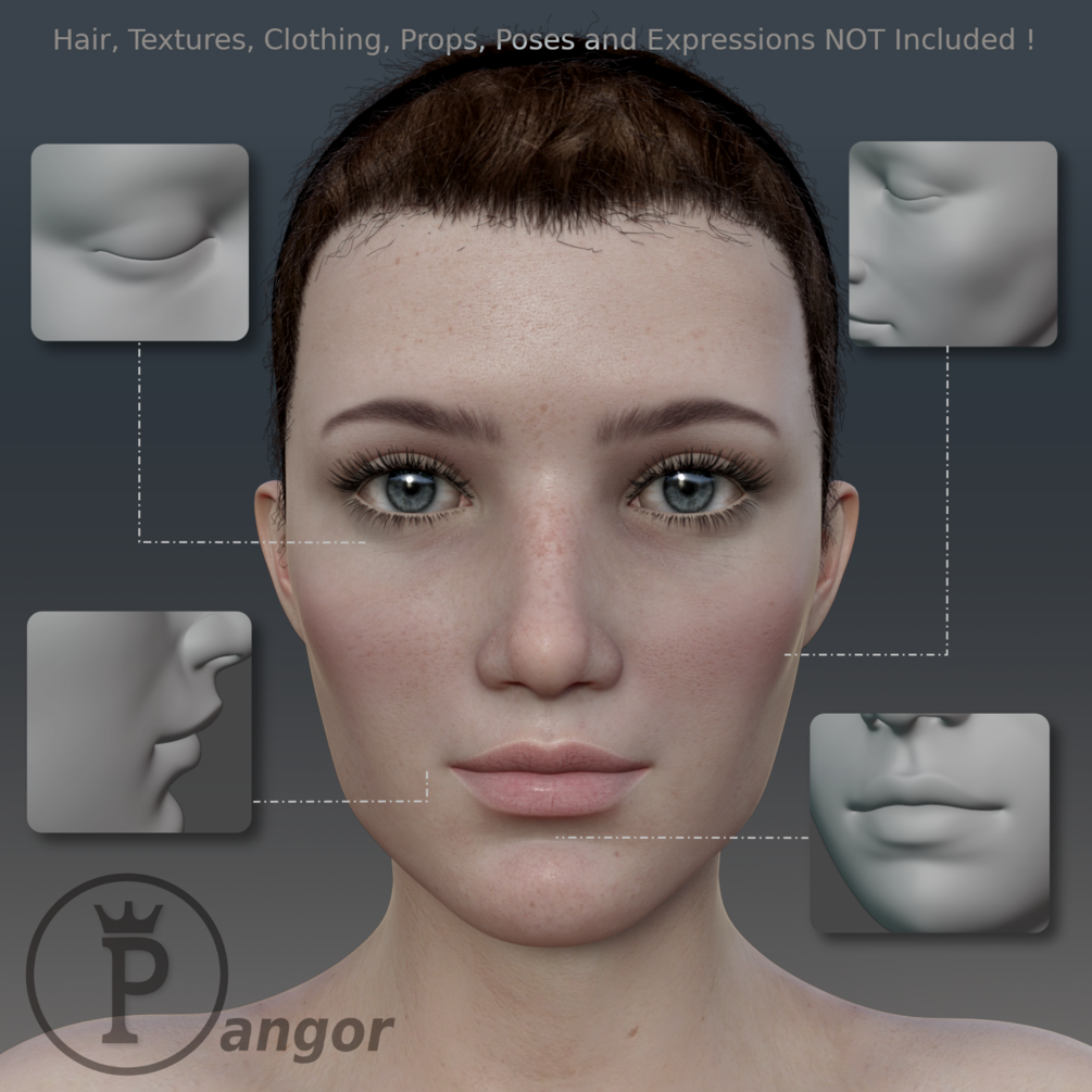 Only the seven face morphs described are provided in this product, all other item shown in the promotional images (textures, models, and other assets) are not in any way a part of this product.